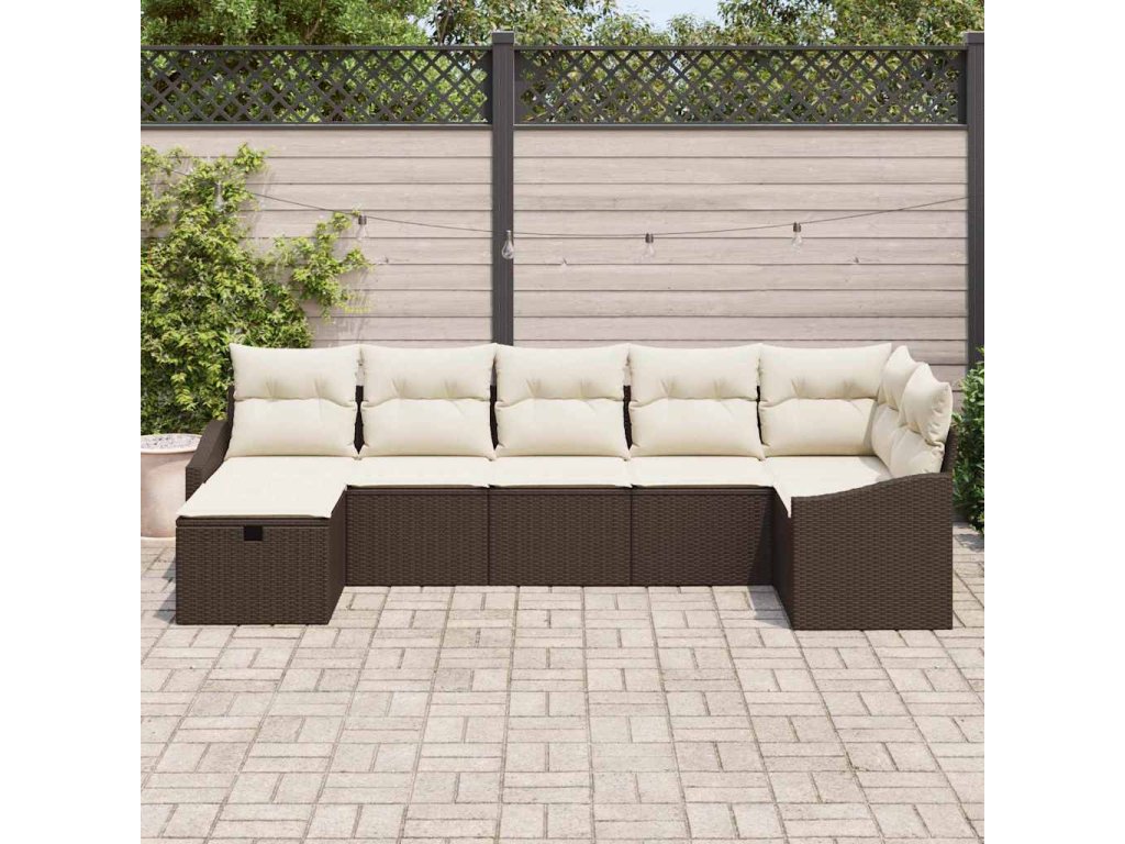 Tato sada zahradního nábytku je stylová a praktická volba pro sezení, ideální na venkovní lenošení. S trendy hnědým ratanovým povrchem a pohodlnými krémovými polštáři udělá tvůj prostor báječným místem pro socializaci i relaxaci.