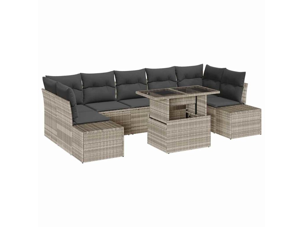 Tato zahradní pohovková sada skvěle spojuje komfort a styl - ideální na slunečné dni nebo poklidné večery venku. Světle šedý poly ratan dodává elegantní vzhled a hodí se skvěle do každého venkovního prostoru, což pozdvihuje vzhled tvé zahrady nebo balkonu.