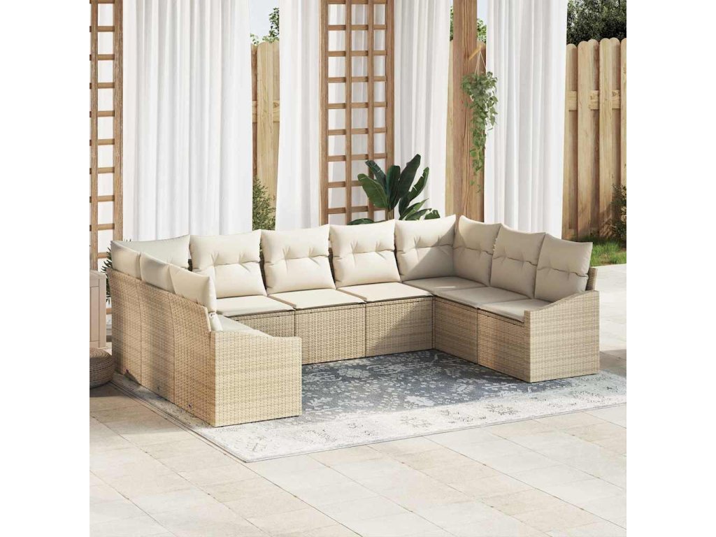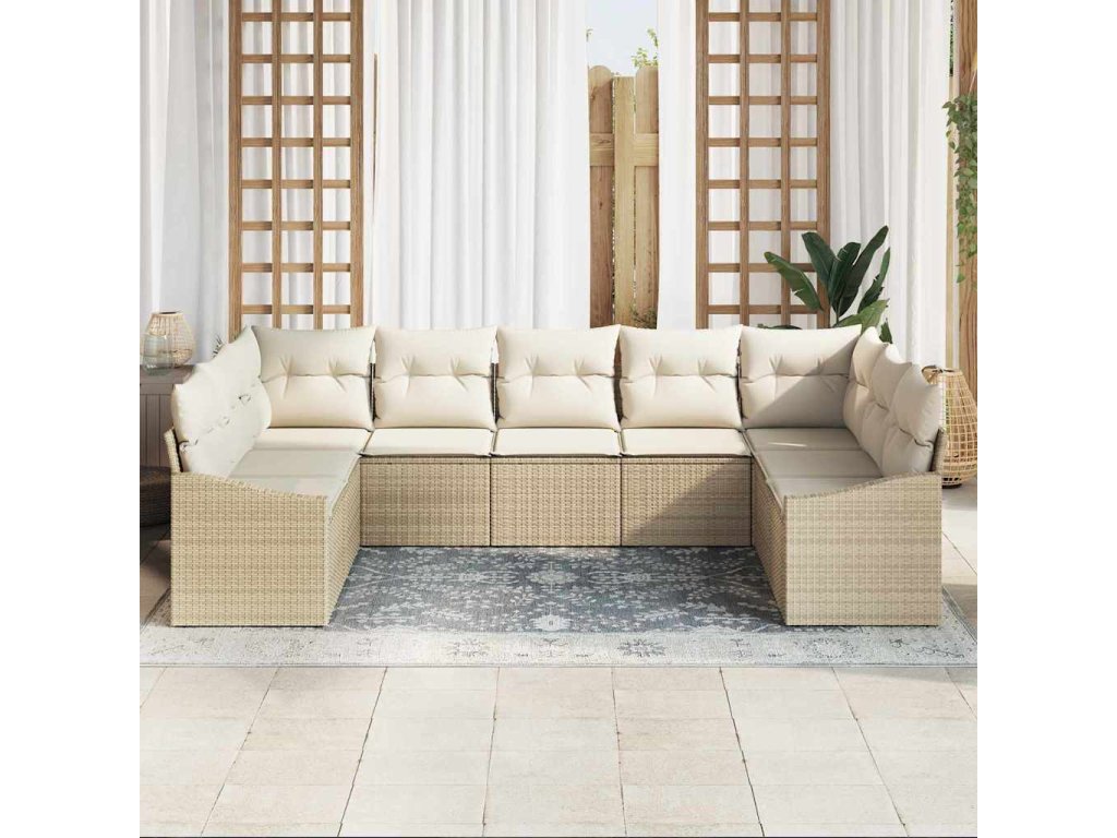 Tato sada zahradních pohovek mění venkovní lenošení svým pohodlným moderním designem. Vyrobena z počasí-odolného syntetického ratanu v krásném béžovém odstínu, je skvělou volbou pro váš balkon nebo patio, přitáhne rodinu i kamarády pro stylový relax.