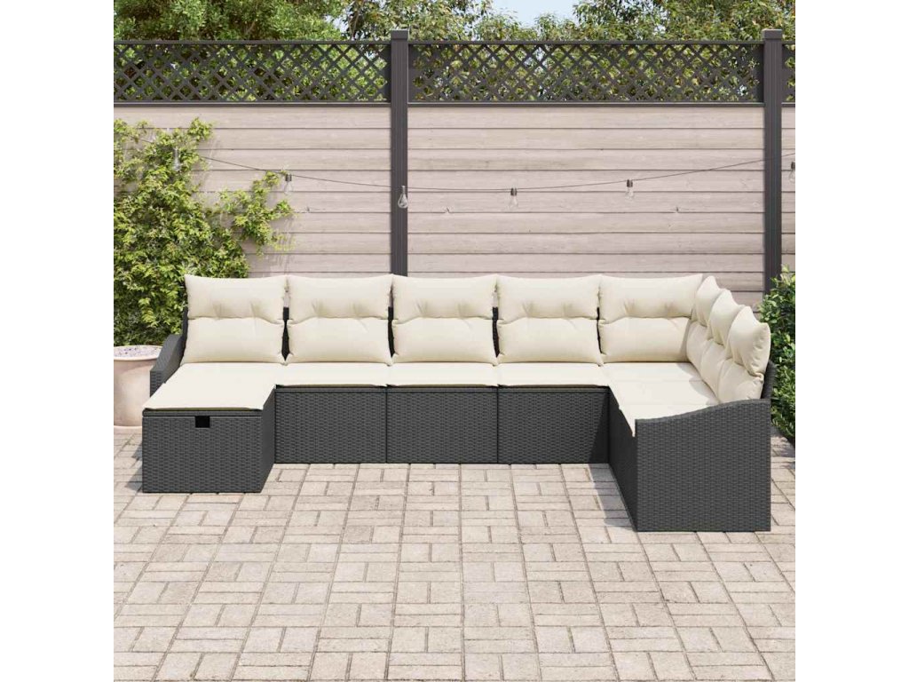 Tato venkovní rohová pohovka přináší pohodlí, styl a praktičnost. Je to super volba pro zahradní akce nebo prostě relax na balkóně. L-tvarovaný design pojme až 8 lidí a dává dost místa pro lenošení nebo zábavu, s elegantním černobílým barevným schématem, které vypadá skvěle na jakékoli terase.