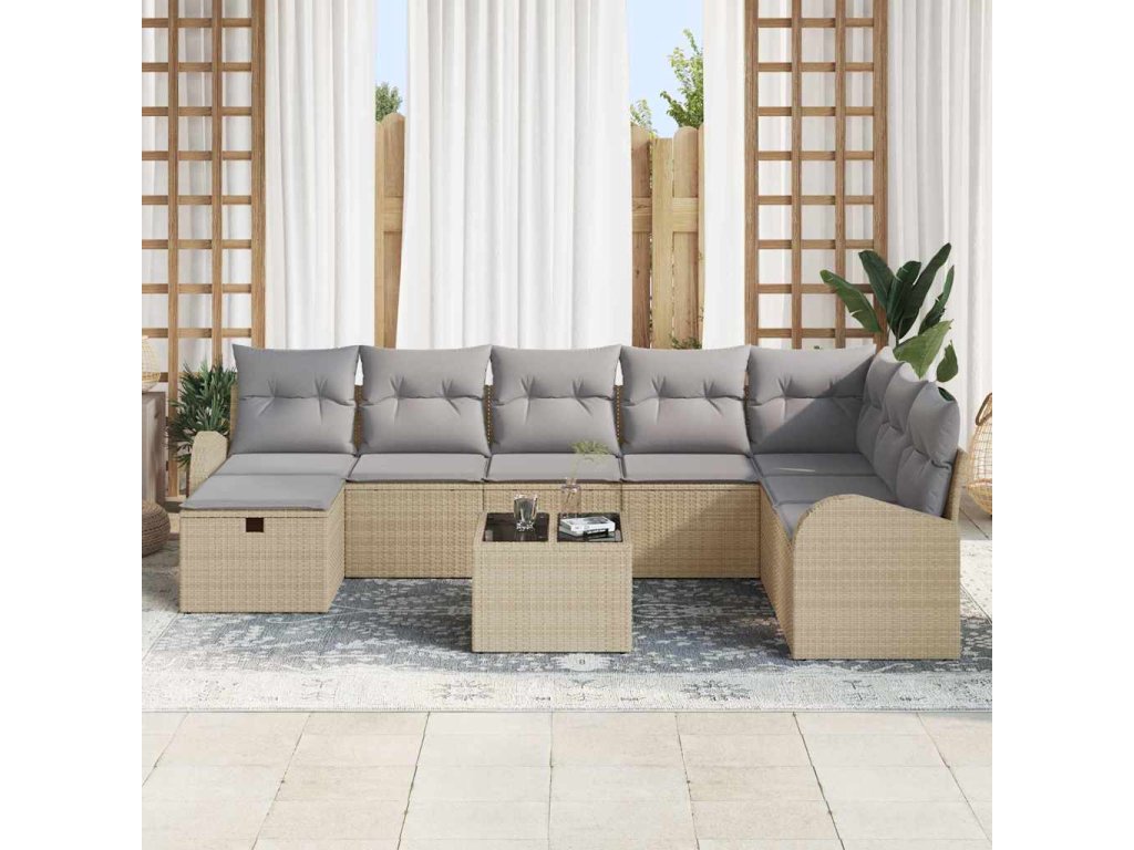 - Tkaný poly ratanový vzhled – Ta pohovka má hladký tkaný poly ratan, suitable for co se hodí do zahrady a na terasu. Je odolná vůči UV záření, takže i v každém počasí bude vypadat skvěle. Navíc, tkaný design jí dodává šmrnc, což ji dělá pohodlným a stylovým místem na venkovní sezení.
