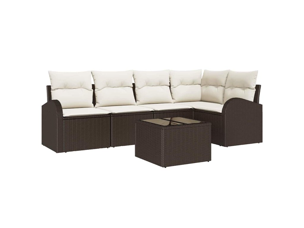 - 1 x rohové sedadlo, 2 x centrální sedadlo, 2 x armrest pohovka, 1 x stůl, 5 x sedací polštář, 6 x zadní polštář