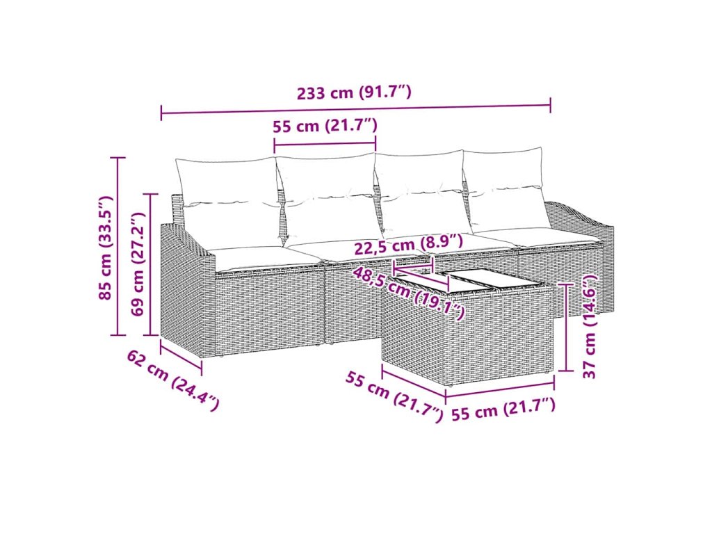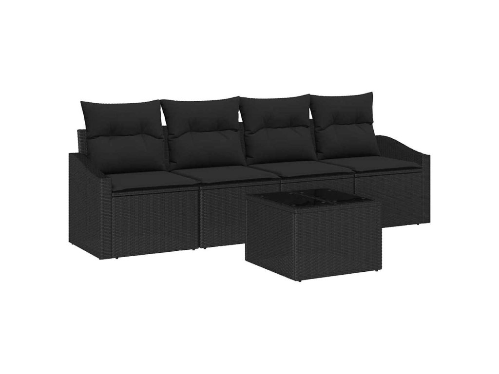 Tato 5 kusová zahradní pohovka je stvořená pro venkovní život. Má moderní vzhled a skvělou funkčnost. Elegantní černý rám z polyratanu s měkkými polštáři přináší svěží pocit a pohodlně se na ní usadí čtyři lidi - ideální pro patia nebo zahrady.