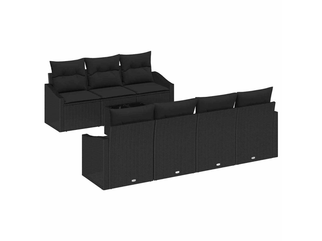 Tato zahradní sedačka je skvělým doplňkem každého venkovního prostoru - přidává teplo a styl na váš balkon, terasu nebo do zahrady. Černý polyratan a pohodlné polštáře vytvářejí uvolněnou atmosféru, ideální pro relaxaci i jídlo - skvělé na večírky nebo příjemné večeře.
