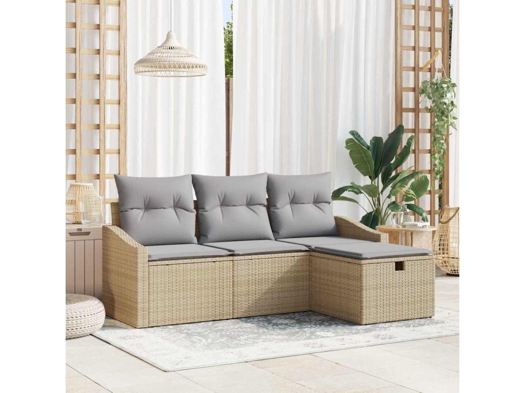 - Materiály: Vyrobená z robustního poly ratanu, tahle pohovka je připravená pro venkovní použití, skvěle odolává vyblednutí, UV záření a vodě. Polyesterové polštáře dodávají příjemnej měkkej pocit, což zajišťuje pohodlí a jednoduchou údržbu. Tyhle chytré volby materiálů zaručujou, že vydrží a budou vypadat dobře i po čase.