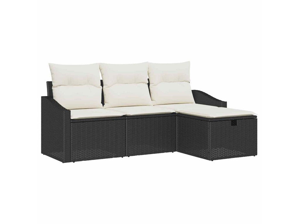 Tato sada zahradní pohovky je perfektní kombinací stylu a pohodlí, což ji dělá ideální pro lenošení a odpočinek venku. Moderní design zahrnuje černý polyratan a pohodlné krémové polstry, které vytvářejí příjemnou atmosféru pro jakýkoliv balkon nebo patio.