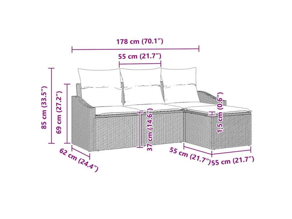 Tahle moderní obdélníková pohovka pro 4 lidi je super kombinace stylu a praktičnosti. Navržená pro zahrady a terasy, přináší současný vzhled s čistými liniemi a minimalistickým designem. Modulární styl pohovky je skvělou volbou pro relax a zábavu, takže ji můžete přizpůsobit podle potřeby. Přidává trendy nádech, který snadno oživí venkovní prostory.