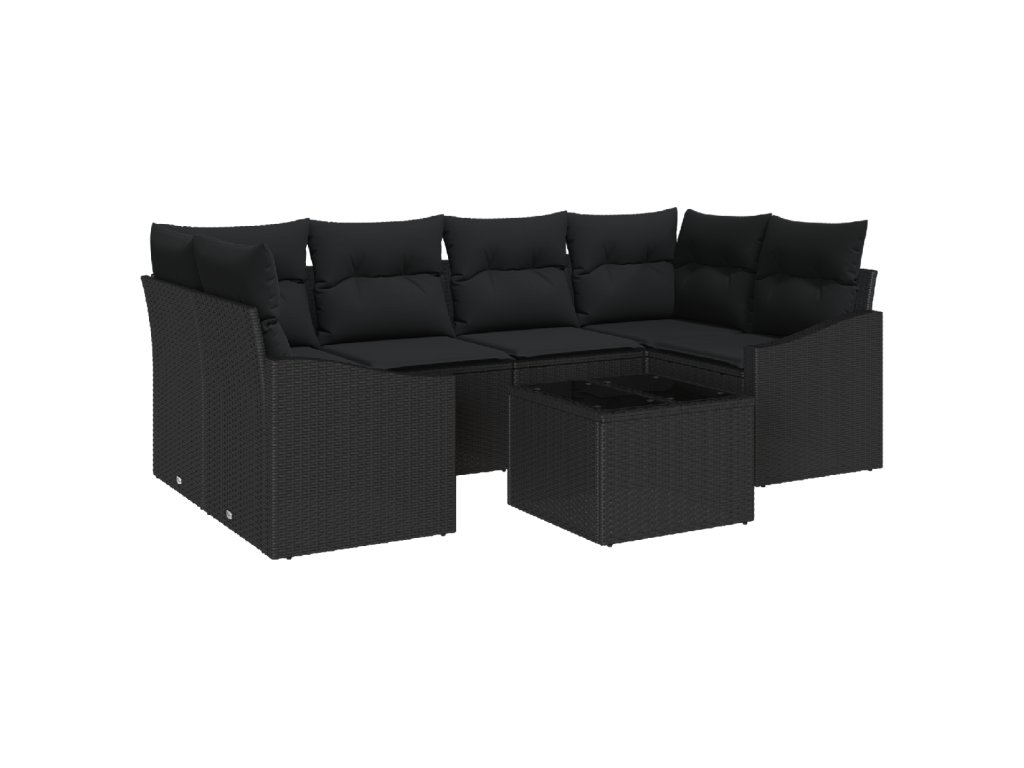 Tento 7-dílný zahradní set spojuje stylový design a skvělý komfort, což ho dělá ideálním pro venkovní jídlo a odpočinek. Jeho moderní styl, podtržený černým polyratanem, přidává eleganci jakémukoli balkonovému nebo terasovému prostoru, a vytváří příjemné místo pro rodinu a přátele.