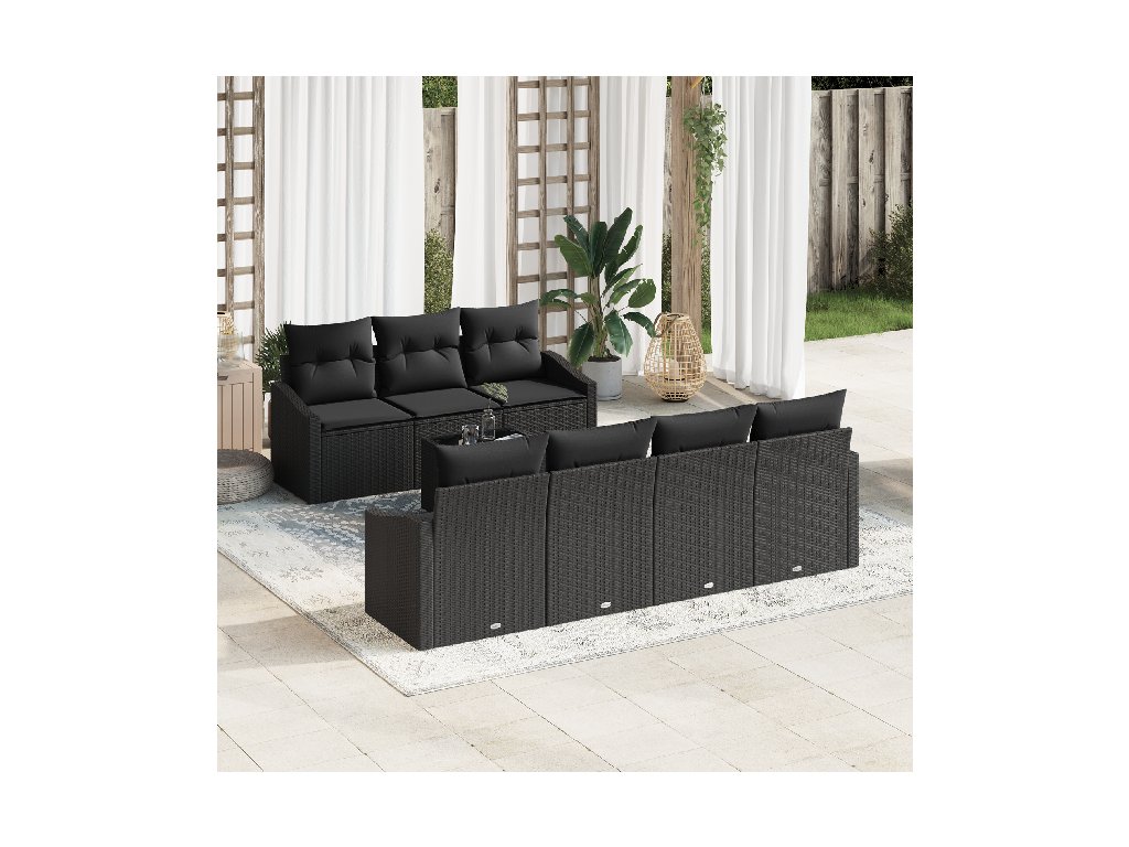 Tento 8-dílný zahradní set s polštáři skvěle kombinuje styl a praktičnost, poskytuje ti ideální místo pro venkovní jídlo s přáteli. Moderní vzhled s černým poly ratanem dodá tvé terase trendy šmrnc, ideální pro skvělé stolování s přáteli a rodinou.