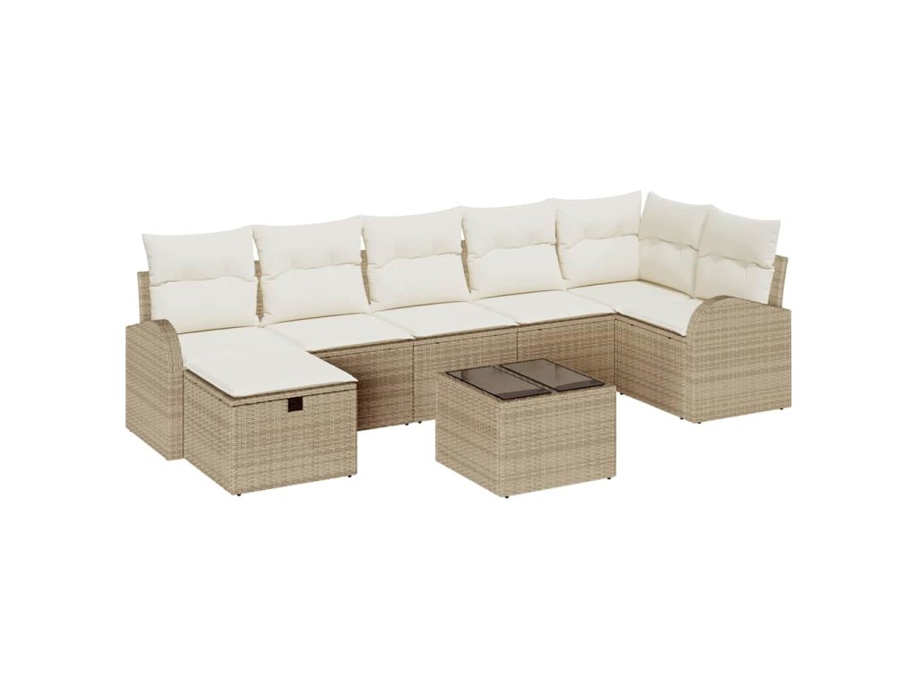 - Dodávka obsahuje: 3 x Středová sedací souprava včetně úložné funkce, 1 x Rohová sedací souprava včetně úložné funkce, 2 x Opěrková sofa včetně úložné funkce, 1 x Ottomanský stoleček s úložnou funkcí, 1 x Zahradní stůl