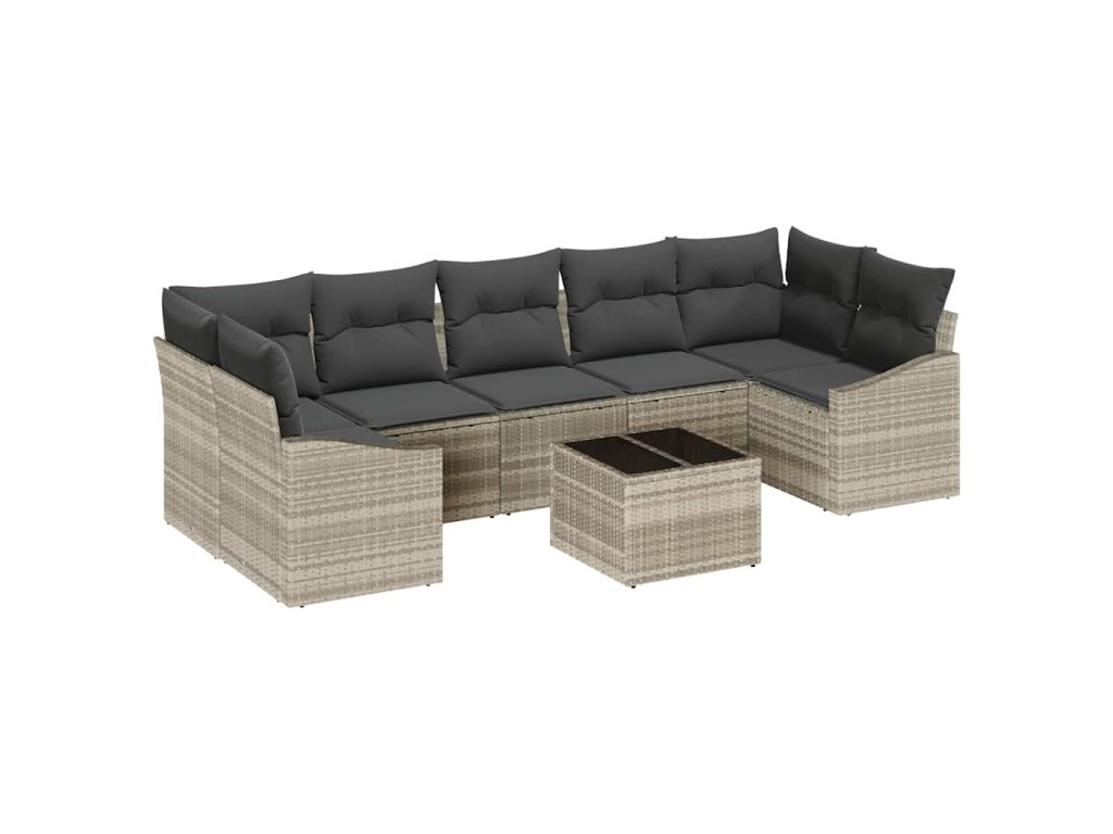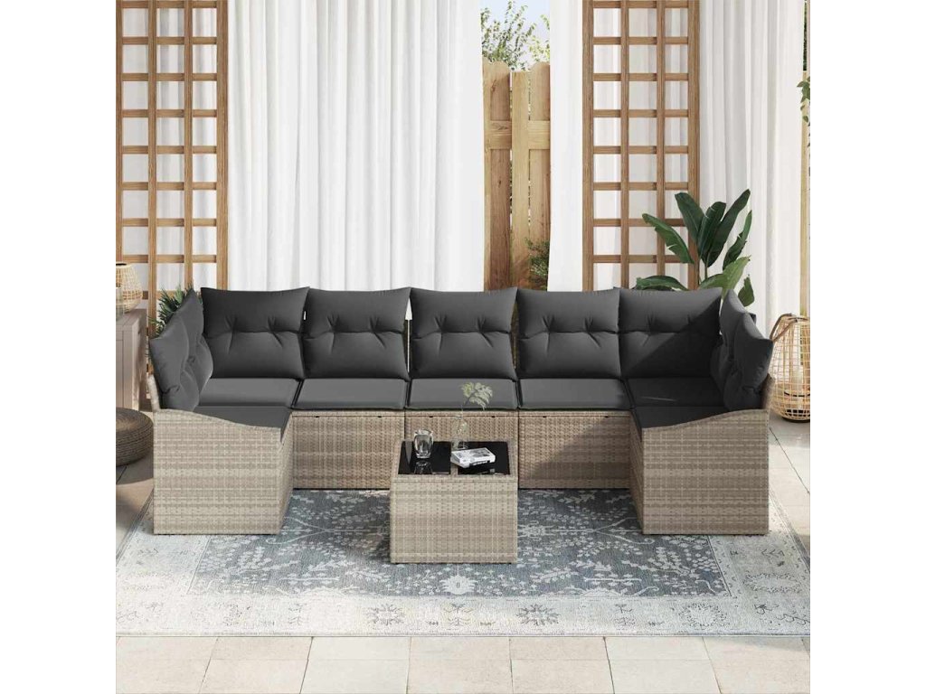 Tato 8dílná sada zahradních pohovek posune vaši venkovní atmosféru na další level díky svému stylovému vzhledu a praktickému designu. Pohodlně pojme až sedm lidí, ideální pro rodinné setkání, grilování nebo jen takové opalování na balkóně.