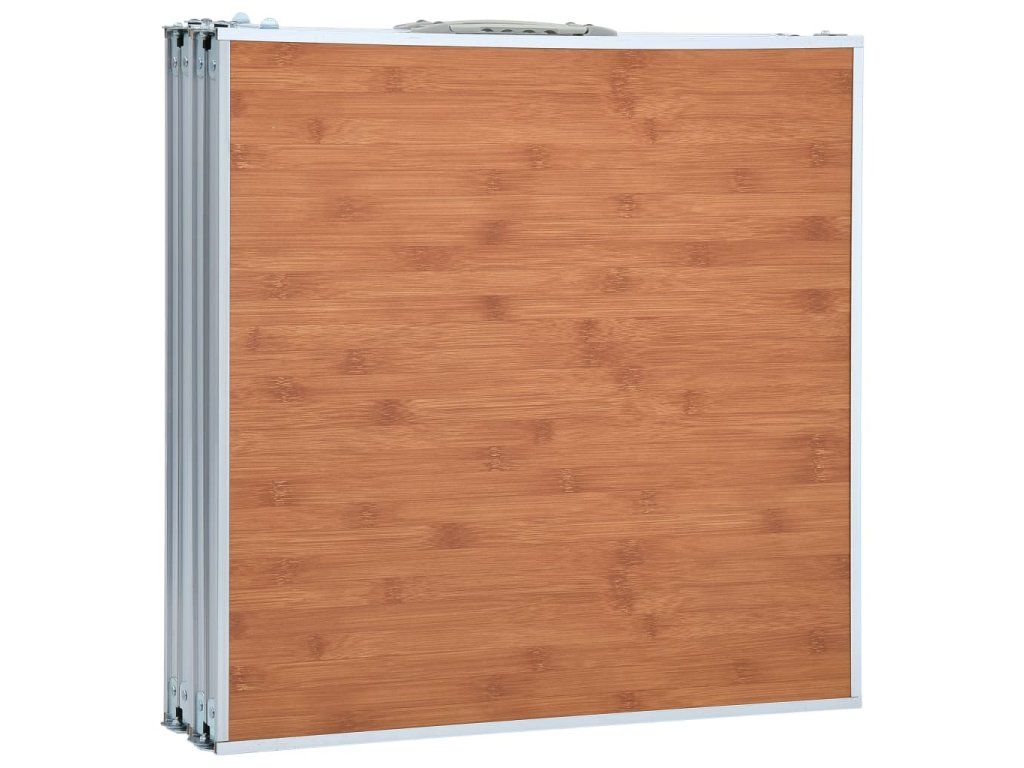 Kempingový stůl je lehký. Jeho skládací design usnadňuje přepravu a urychluje skladování, pokud ho právě nepoužíváte. Rukojeť umožňuje přenášet stůl s sebou, když se chystáte na piknik nebo na výlet. Vzhledem ke své pevné konstrukci stůl unese až 30–50 kg. Kovový rám a robustní stolní deska z MDF mu přidávají na stabilitě a odolnosti.