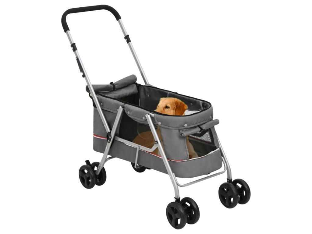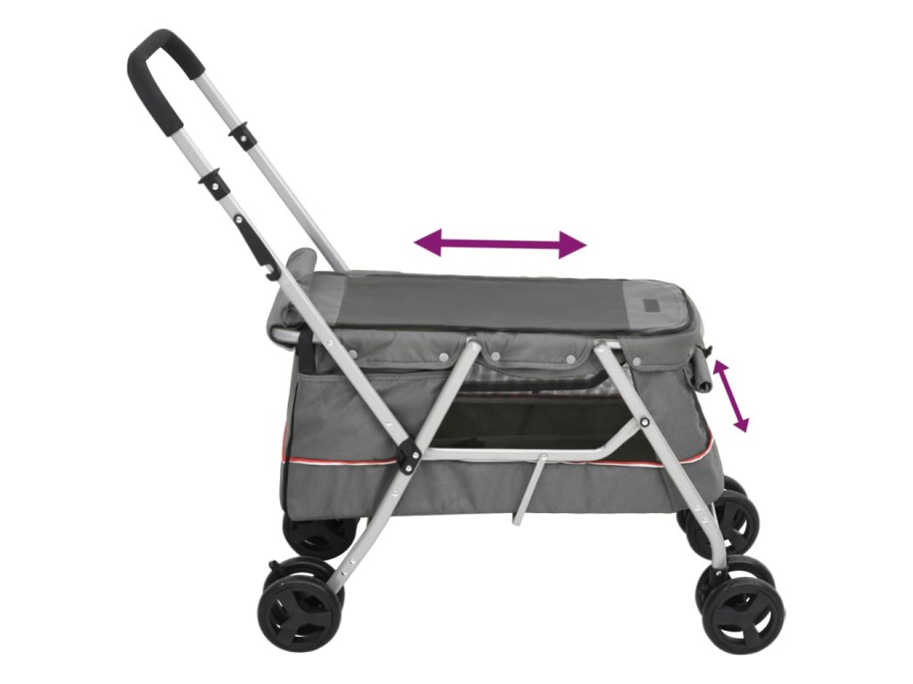 - Skládací funkce: Kočárek pro štěňata je skládací, což umožňuje úsporu místa při skladování a pohodlnou přepravu.