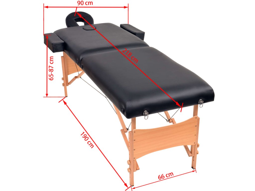 - Rozměry (bez opěrek paží a hlavy): 190 x 66 cm (D x Š)