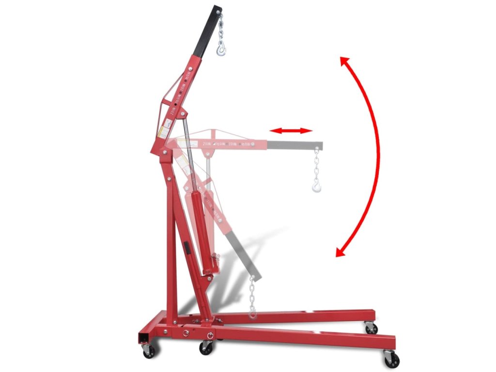 Hydraulický jeřáb je vyrobený z vysoce kvalitní oceli a je velmi odolný. Jeřáb obsahuje beran, řetěz a hák a nabízí maximální nosnost 2000 kg. Výška zdvihu lze nastavit až na 210 cm.