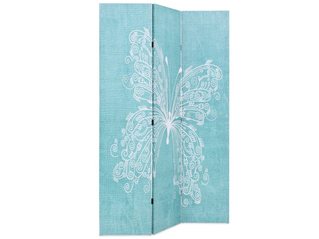 Převlékací paraván má masivní dřevěný rám a je pokryt odolným plátnem, které má na obou stranách krásný motýlí potisk. Ve vašem pokoji vytvoří romantickou atmosféru. Dělící stěnu lze také snadno složit pro úsporné skladování, když ji právě nepoužíváte.