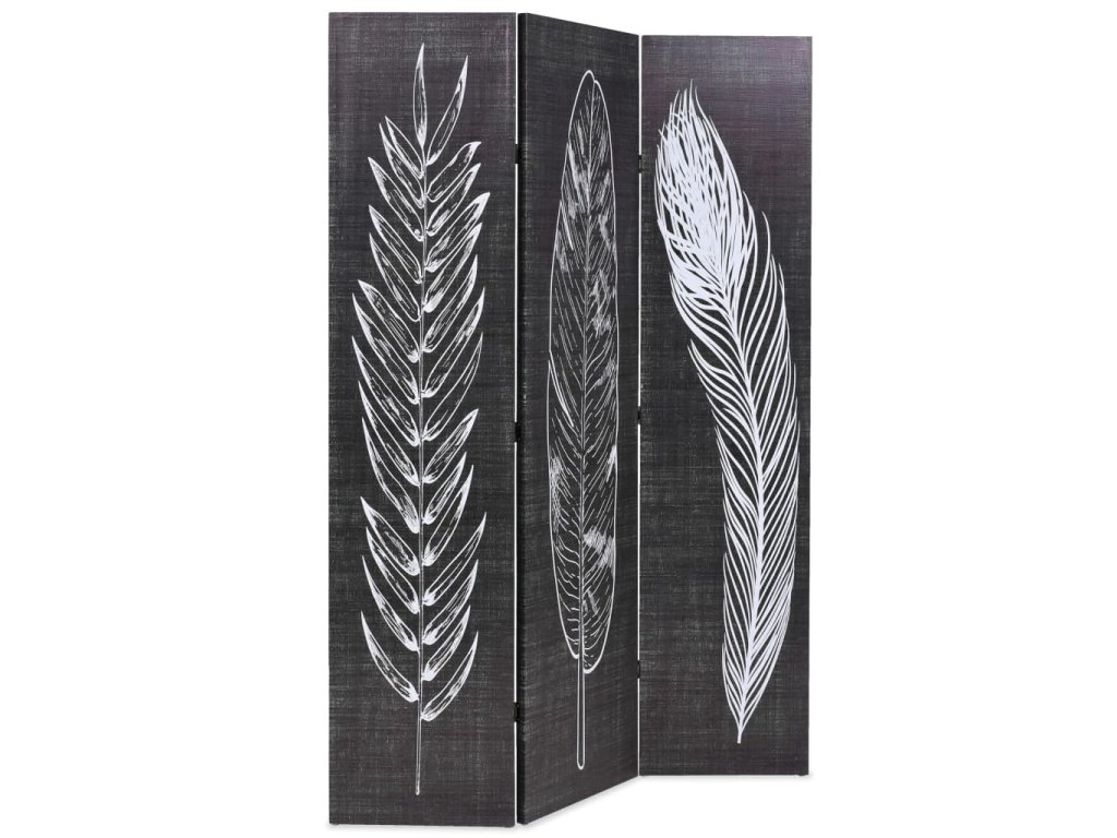 Paraván má masivní dřevěný rám a je pokryt odolným plátnem, který má na obou stranách sofistikovaný potisk na motiv pírek. Do vašeho pokoje vnese zajímavý styl a dekor. Paraván lze také snadno složit pro úsporné skladování, když ho právě nepoužíváte.