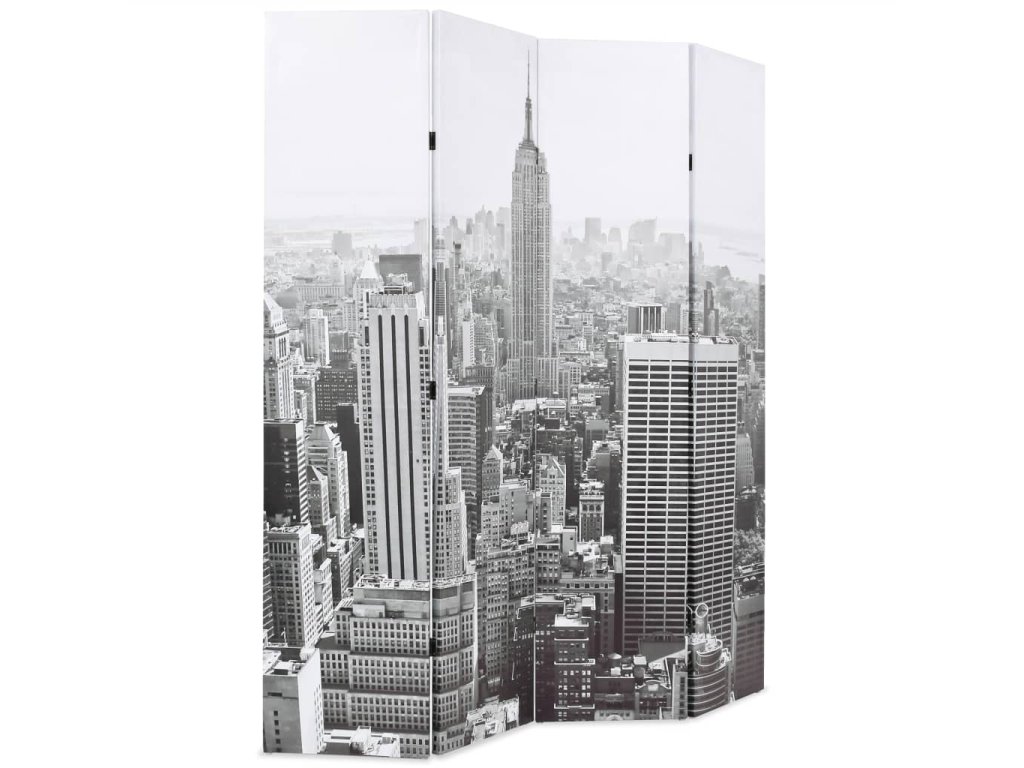 Tato dělící stěna má masivní dřevěný rám a je potažená odolným plátnem, na kterém je velkolepá fotografie v černobílém provedení vyobrazující pohled na denní New York a krásnou Empire State Building a vašemu interiéru dodá nádech moderního stylu. Tato dělící stěna může být pro úsporu místa také jednoduše složena, když ji právě nepoužíváte.