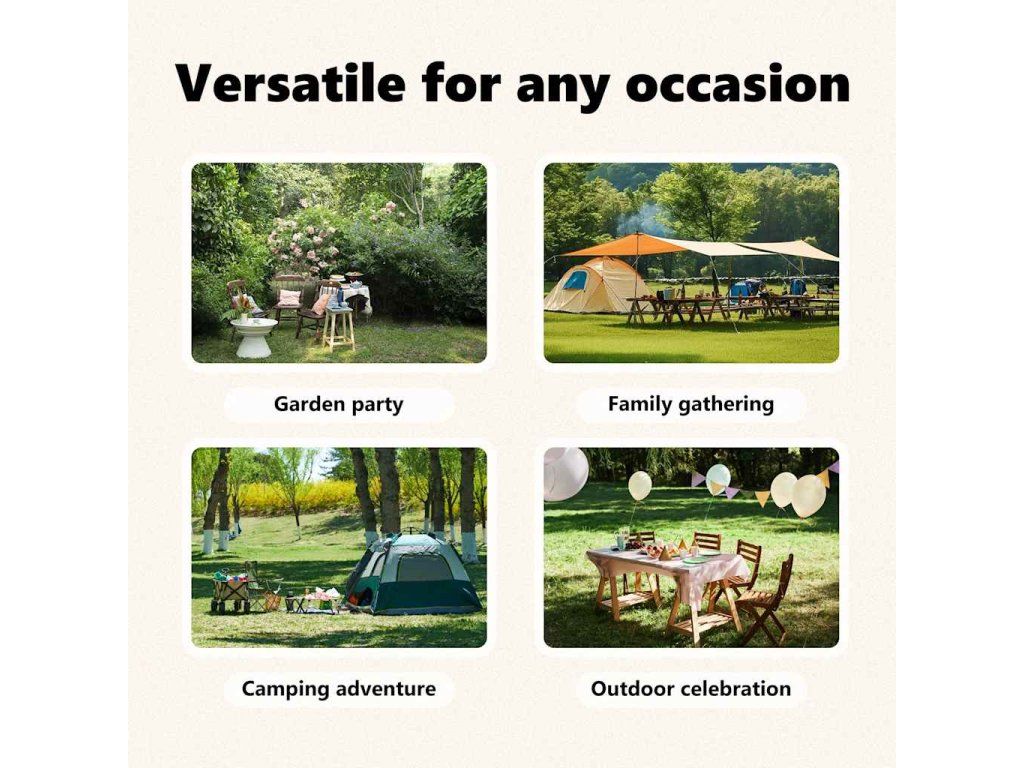 Tento nezbytný skládací párty stan je vynikající pro širokou škálu venkovních akcí, jako jsou rodinné setkání, grilování, odpolední pikniky, kempování, narozeninové oslavy a další!