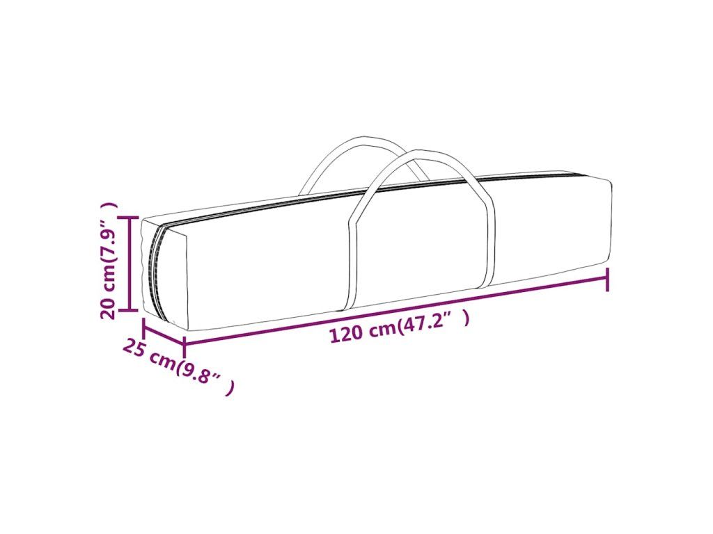 - Materiál bočních stěn: oxfordská tkanina 210D, PE (polyethylen)