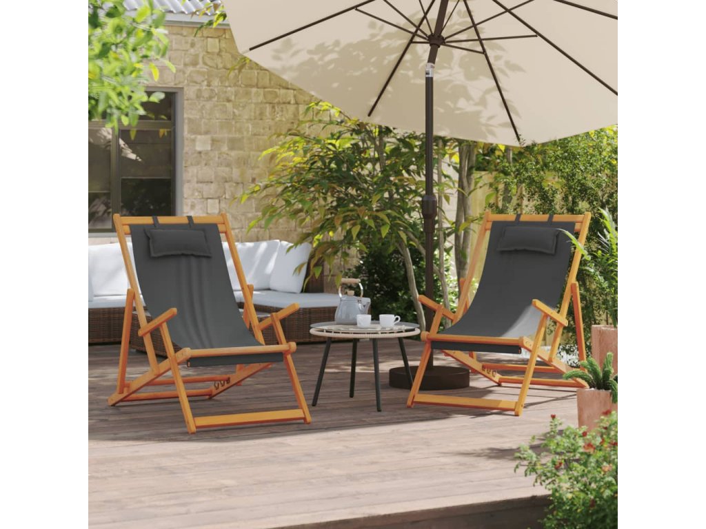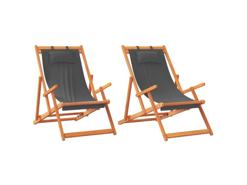 Relaxujte v těchto polohovatelných křeslech na pláži, v kempu nebo na zahradě! Skládací plážová křesla jsou vyrobena z masivního eukalyptového dřeva a polyesterové tkaniny, jsou odolná vůči povětrnostním vlivům a mají dlouhou životnost.