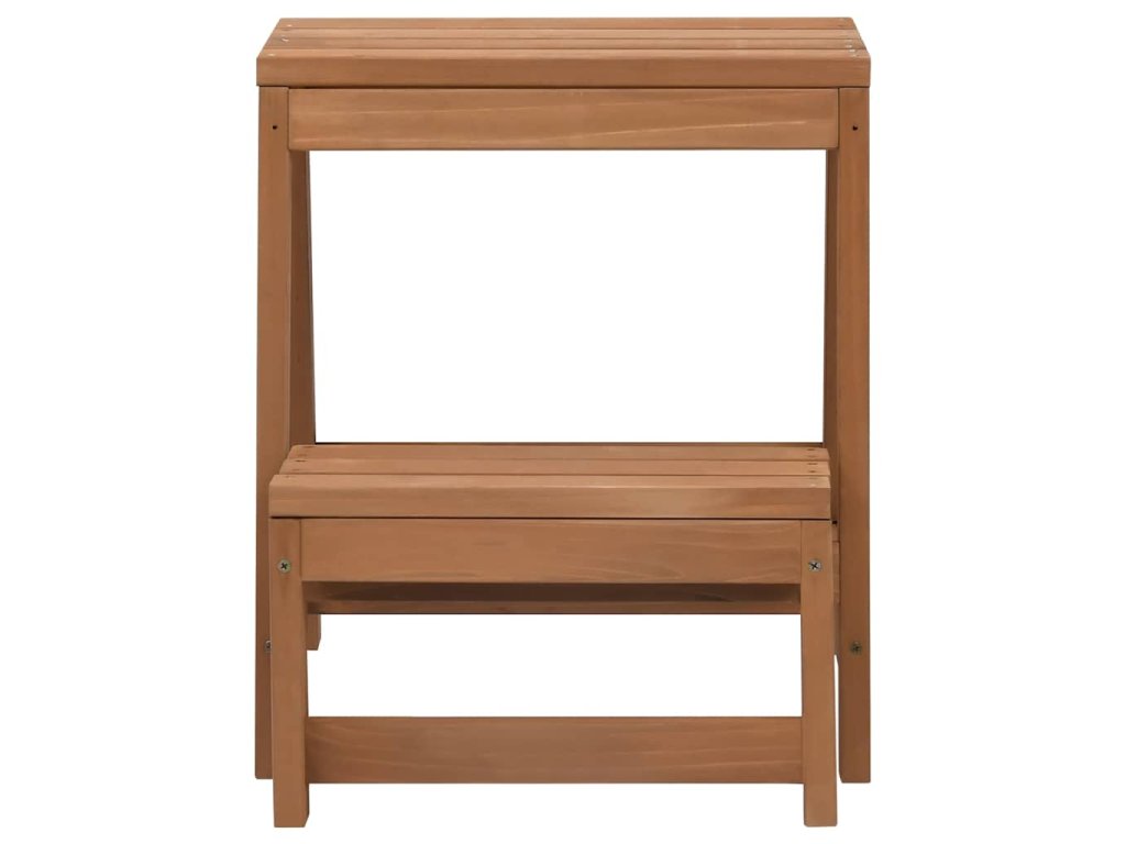 Skládací stolička je vyrobena z masivní jedle, proto je stabilní a odolná. Se skrytým složitelným schůdkem může sloužit různým účelům jako sedák pro spontánní návštěvy, schůdky pro dosažení vysokých poliček a skříněk nebo jako malý úložný nábytek v obývacím pokoji nebo ložnici. Dřevěná složitelná stolička se navíc snadno skladuje, když není používána.