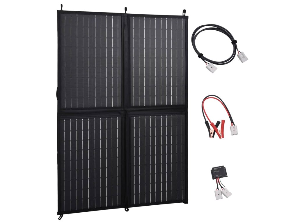Náš 100W skládací solární panel je vybavený solárním ovladačem a krokosvorkovým kabelem pro nabíjení 12V akumulátorů solární energií. Ideálně se hodí pro obytné vozy, čluny, domácnosti, kempování, horolezectví, jachting a další outdoorové aktivity!