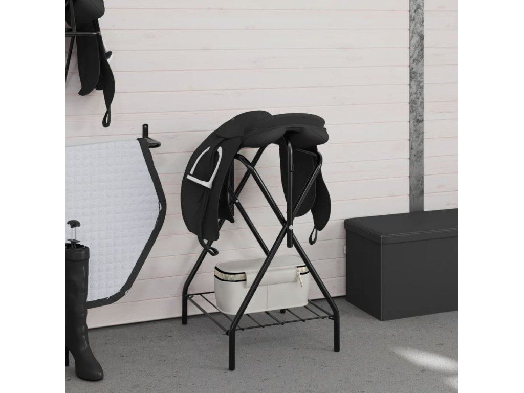 Tento skládací stojan na sedlo je dokonalým vybavením do místnosti s jezdeckým vybavením nebo na koňské výstavy.
