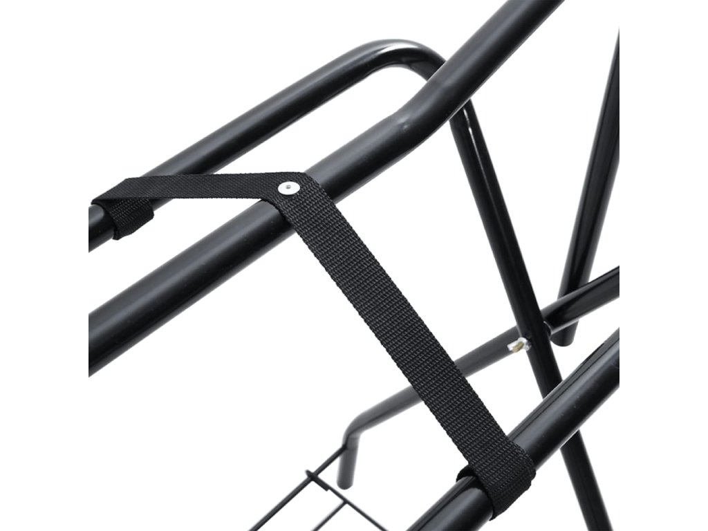- Snadné skladování: Pro bezpečnost a úsporu místa lze stojan na sedlo složit na plocho, když se nepoužívá.