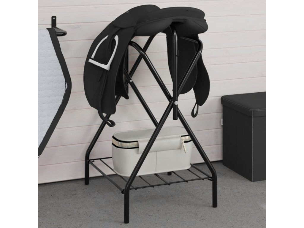 - Dostatek prostoru: Stojan na sedlo se spodní policí poskytuje dostatek prostoru pro uložení jezdeckého vybavení.