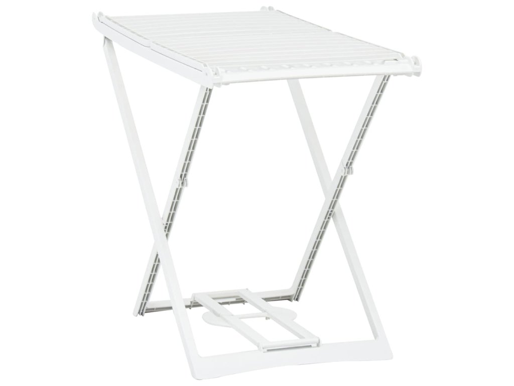 Stojanový sušák je vyrobený z plastu s dlouhou životností. Je odolný proti korozi, vyblednutí a loupání a zároveň velice robustní a stabilní, hodí se tedy pro každodenní použití. Sušit na něm můžete prádlo doma i venku. Pokud ho právě nepoužíváte, můžete ho složit a uložit do rohu.