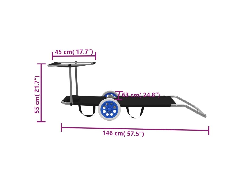 - Rozměry při rozložení: 146 x 63 x 55 cm (D x Š x V)