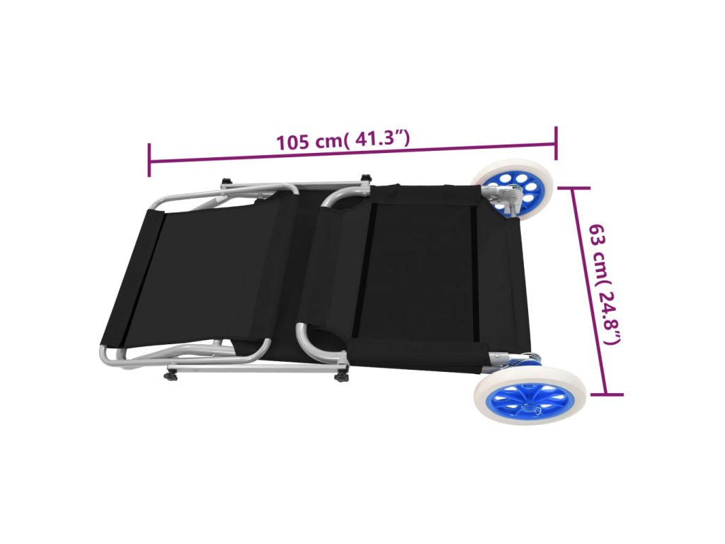 Plážové lehátko je skládací, takže se snadno skladuje, když ho právě nepoužíváte. Je také lehké a disponuje 2 kolečky pro pohodlnou přepravu.