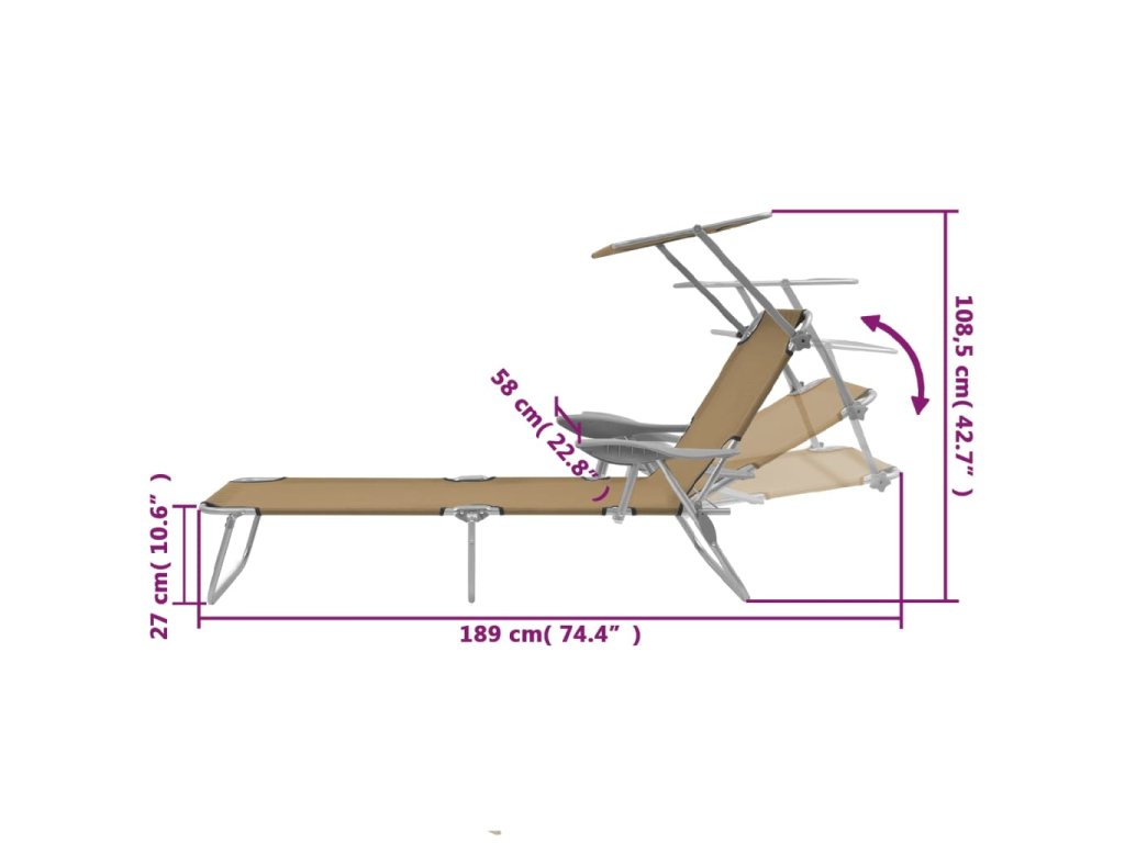 Toto vysoce kvalitní lehátko je vybaveno nastavitelnou stříškou, takže se při opalování nemusíte strachovat, že vám bude slunce svítit přímo do očí.