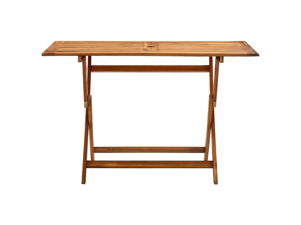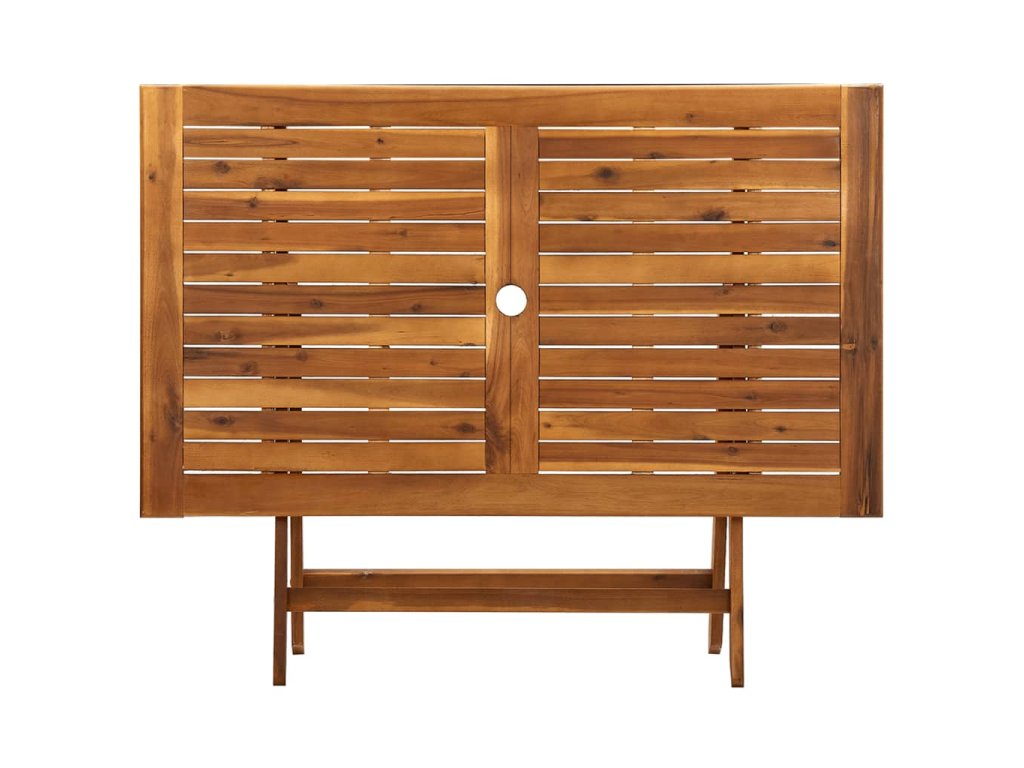 Tento zahradní stůl je vyrobený z masivního akáciového dřeva, tropického tvrdého dřeva, které je odolné vůči povětrnostním vlivům a má dlouhou životnost. Jeho povrch je napuštěný olejem, takže se snadno čistí vlhkým hadříkem. Stůl se dá složit, abyste ušetřili místo, když ho zrovna nepoužíváte.