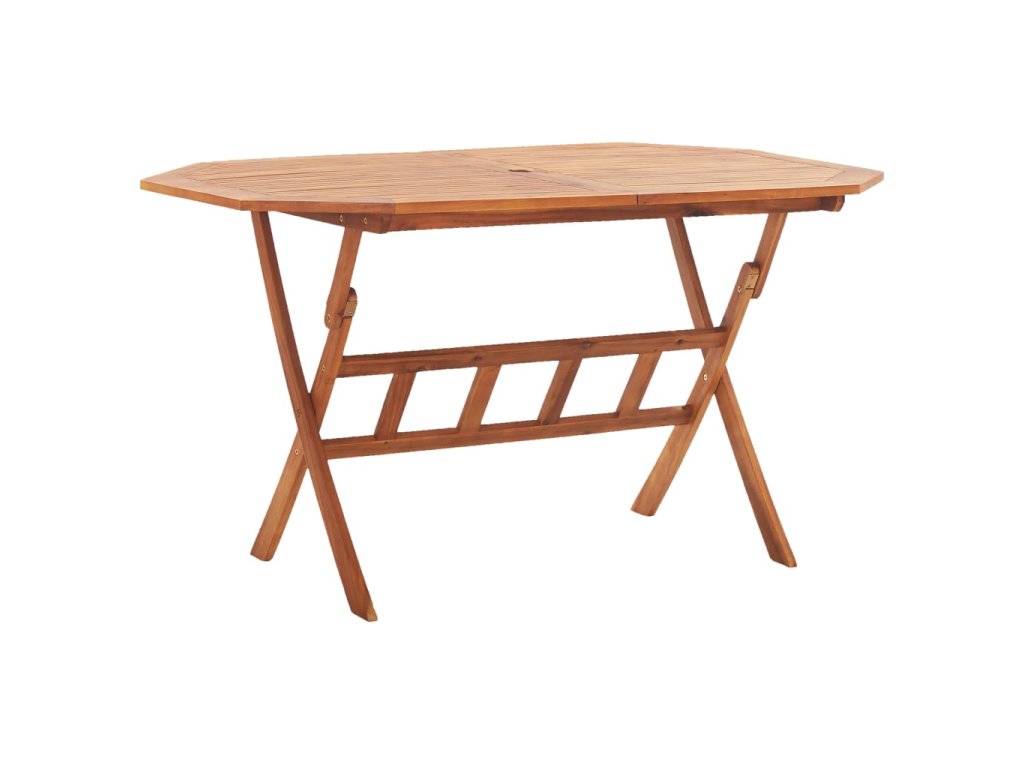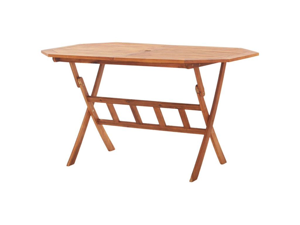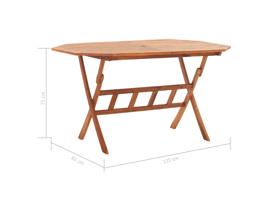 Zahradní jídelní stůl je vyrobený z masivního akáciového dřeva. Toto tropické tvrdé dřevo se vyznačuje odolností vůči povětrnostním vlivům a mimořádnou životností. Uprostřed stolu je otvor pro slunečník. Když ho právě nepotřebujete, můžete stůl jednoduše složit, abyste ušetřili místo. Jídelní stůl vyžaduje montáž.