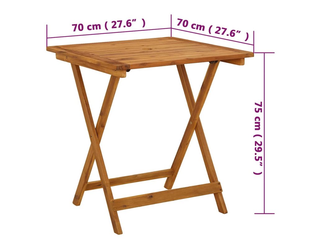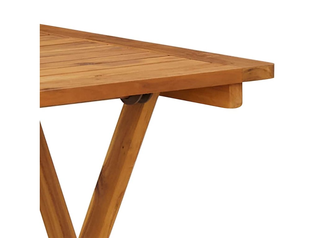 Venkovní jídelní stůl je vyrobený z masivního akáciového dřeva. Toto tropické tvrdé dřevo se vyznačuje odolností vůči povětrnostním vlivům a mimořádnou životností. Pokud ho právě nepoužíváte, lze stůl snadno složit, abyste ušetřili místo. Jídelní stůl vyžaduje montáž.