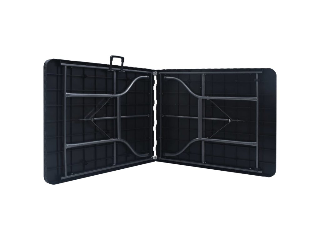 Stůl je zpevněný stabilním ocelovým rámem s dlouhou životností. Klimaticky odolný a voděodolný HDPE plast usnadňuje čištění stolu. Stůl je také velmi lehký, takže se snadno přenáší. A pokud potřebujete ušetřit místo, můžete stůl rychle složit. Složený stůl snadno kamkoliv odnesete za praktickou rukojeť na straně.