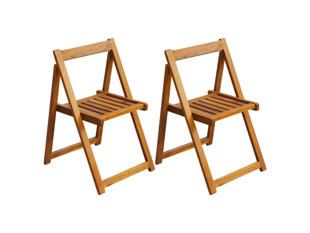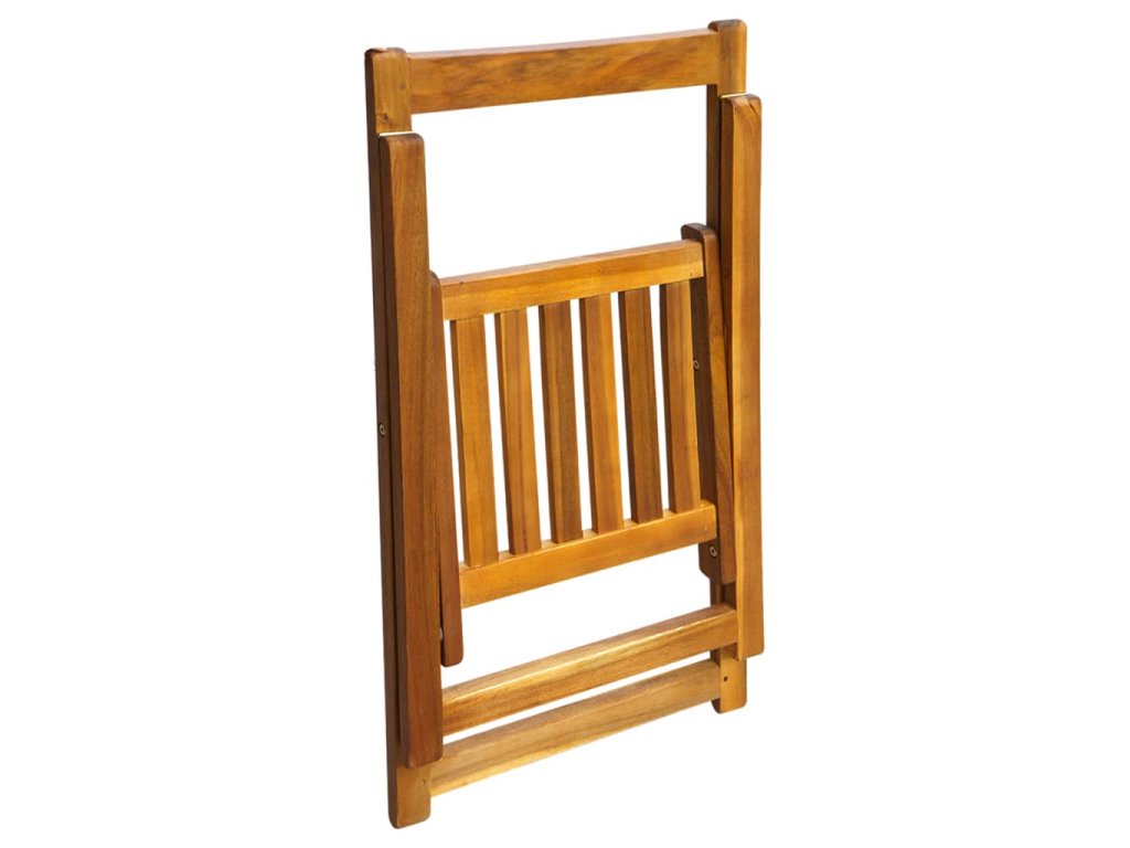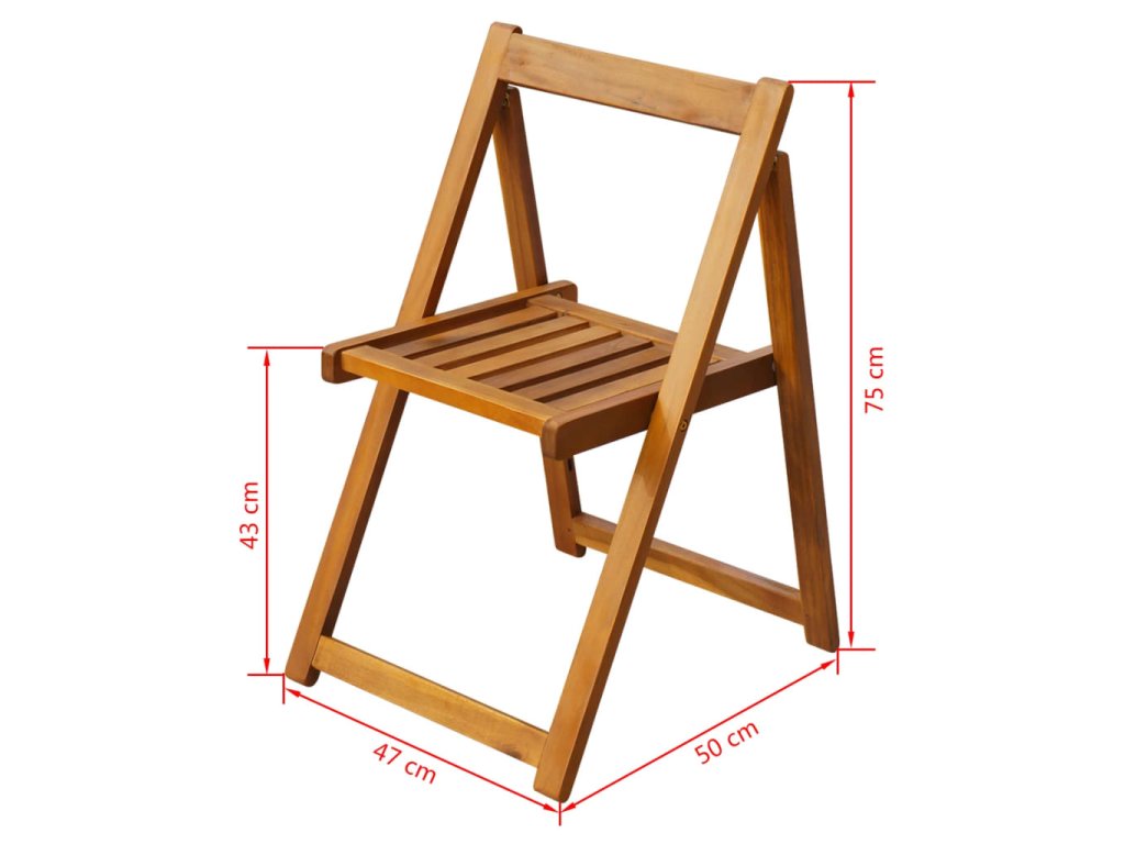 Židle jsou robustní a odolné vůči povětrnostním vlivům, protože jsou vyrobeny ze silného akáciového dřeva s přírodním olejem. Díky dřevěné konstrukci jsou velmi odolné. Tyto skládací židle lze snadno složit, když se nepoužívají, a nezaberou příliš mnoho prostoru.
