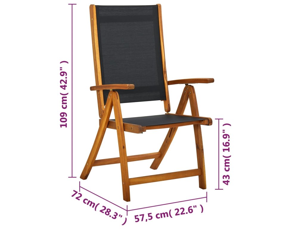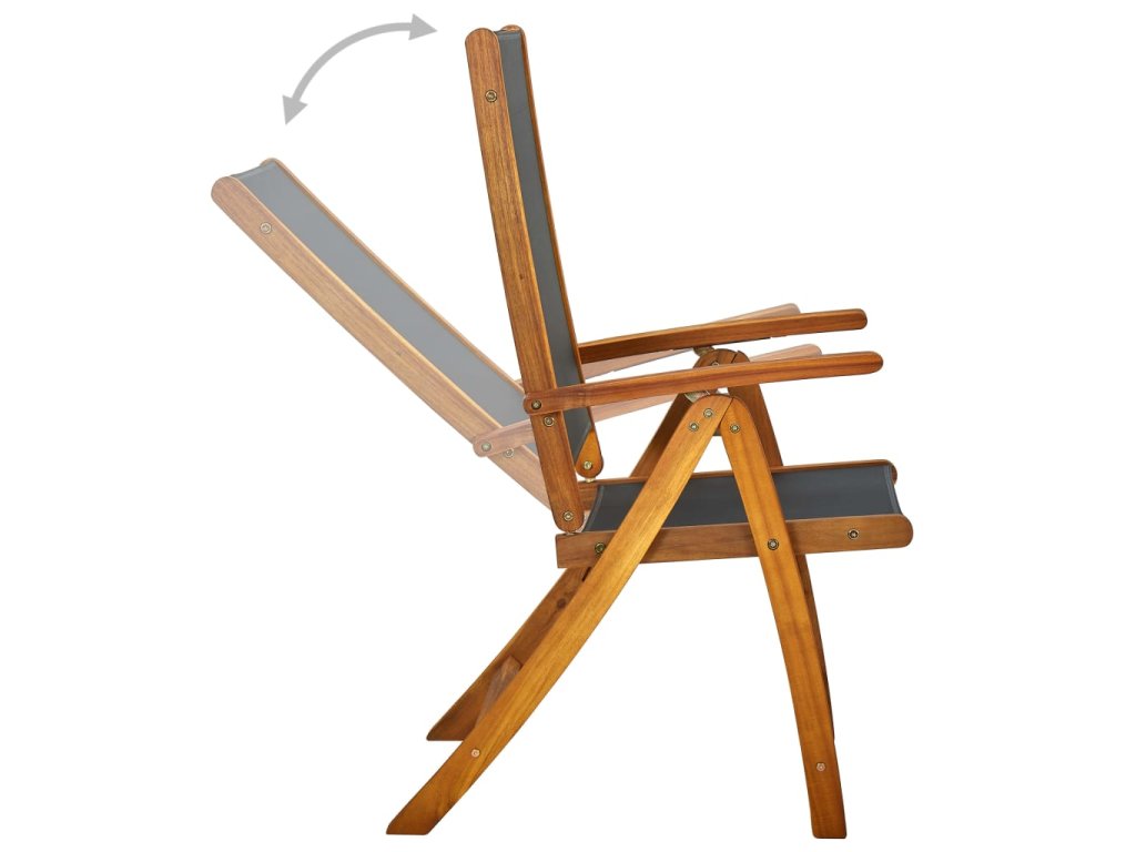Díky rámům z akáciového dřeva jsou tyto židle velmi robustní a odolné. Zahradní židle mají sedáky a opěradla z textilenu, měkkého na dotek a odolného vůči povětrnostním vlivům, a opěradla se dají nastavit do 5 poloh, takže vždy můžete najít tu pozici, která je pro vás nejpohodlnější. Naolejováním ošetřený povrch se snadno čistí vlhkým hadříkem. Jelikož mají lehkou konstrukci, dají se tyto židle bez námahy přesouvat z místa na místo. Pokud je zrovna nepoužíváte, můžete je složit, abyste ušetřili místo.