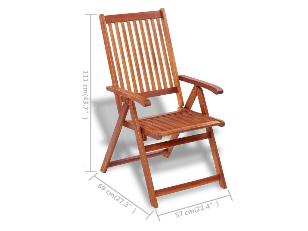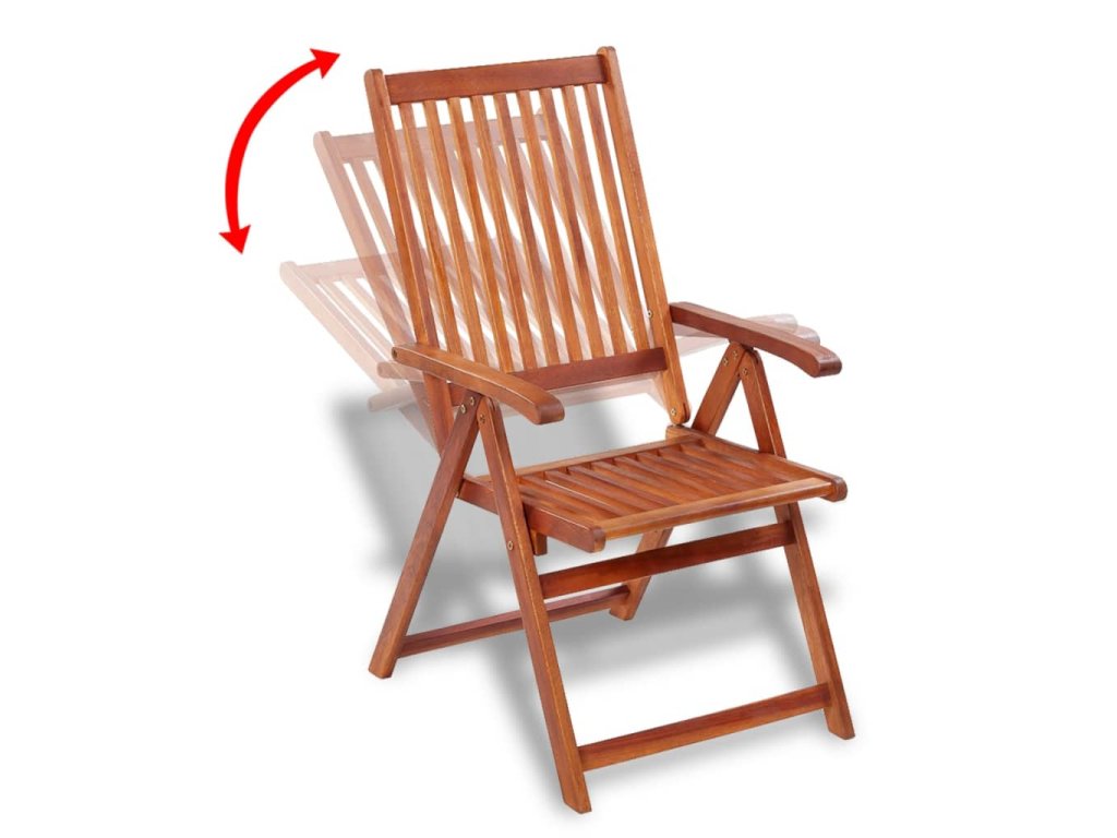 Tento jídelní set je vyroben z vysoce kvalitního akáciového dřeva, tropického tvrdého dřeva, které je odolné vůči povětrnostním vlivům a velmi trvanlivé. Díky olejem natřenému povrchu je snadné ho čistit vlhkým hadříkem. Židle se dá polohovat do 5 pozic, takže vám poskytne optimální pohodlí při sezení. Židle se dají složit, abyste ušetřili místo, když je zrovna nepoužíváte.