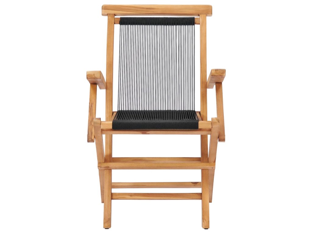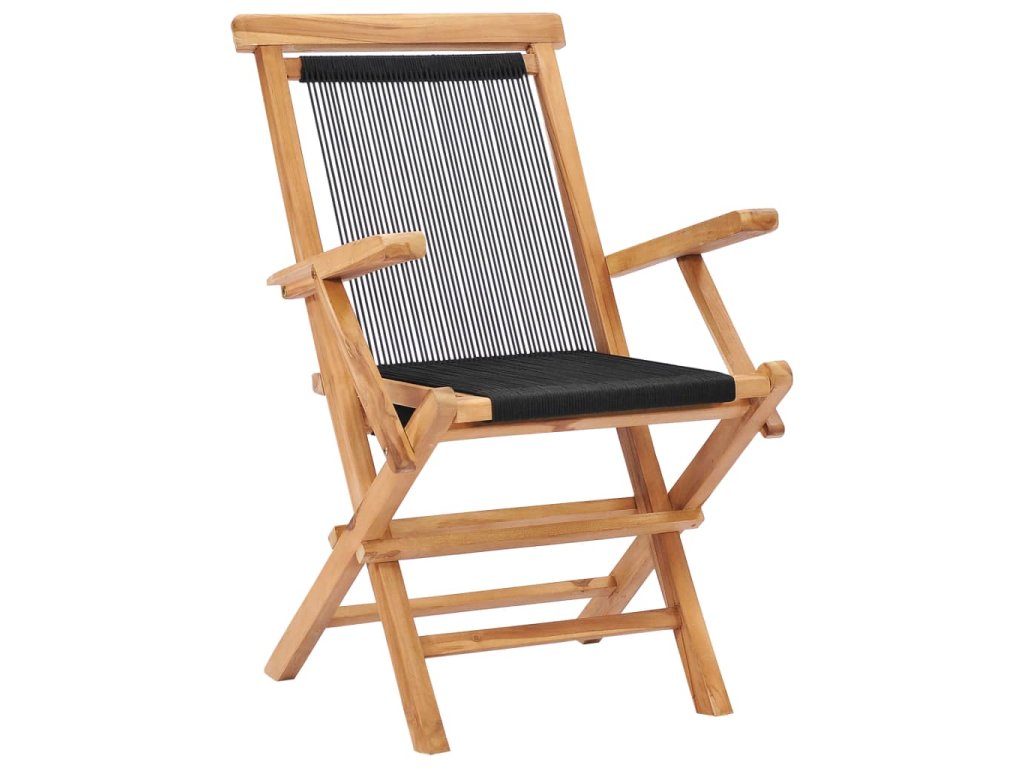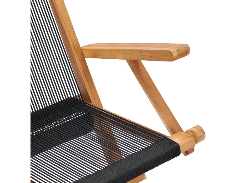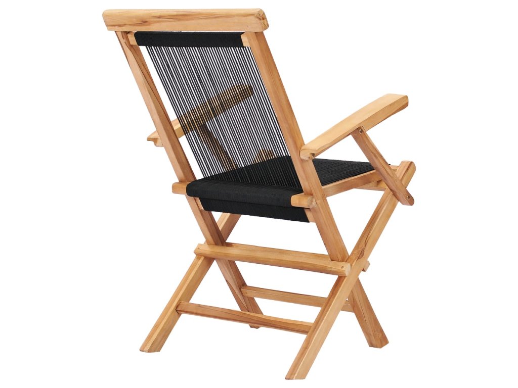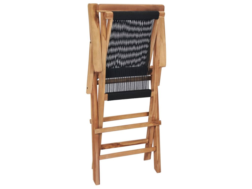 Tato zahradní židle z teakového dřeva vyniká svým nevšedním designem s polyesterovými provázky a skládací konstrukcí. Skvěle vám poslouží na zahradě, terase nebo verandě, až si budete chtít popovídat s rodinou a přáteli nebo si jen tak užívat pěkného počasí.