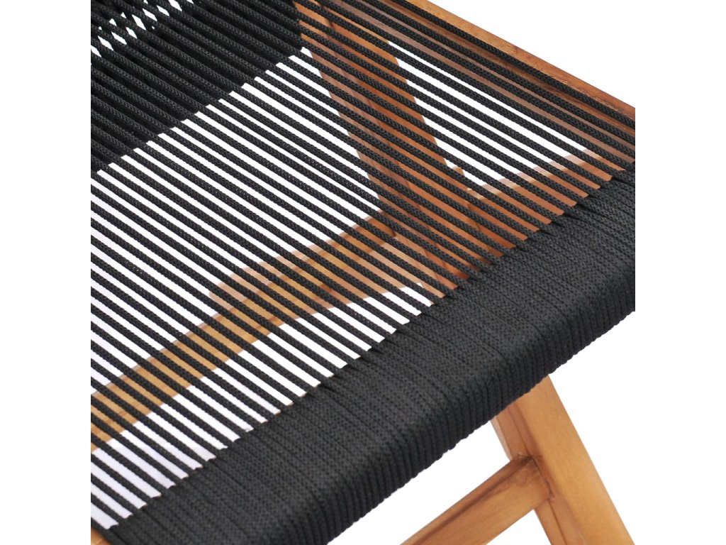 - Materiál: jemně broušené teakové tvrdé dřevo, ošetřené lazurou na vodní bázi, polyesterové provázky