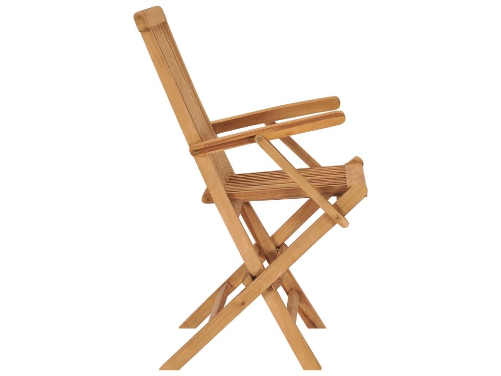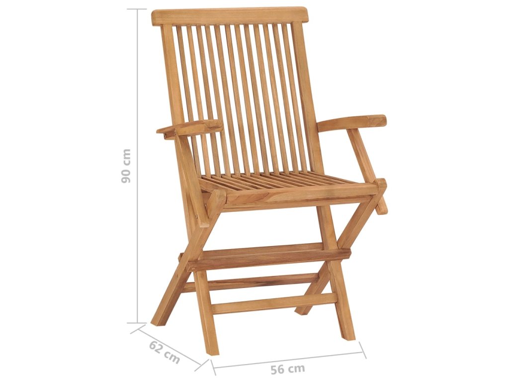 Nábytek je zhotovený z extrémně odolného teakového tvrdého dřeva, které již prošlo procesem smršťování, bylo uměle vysušené a poté jemně a dohladka obroušené. Teakové dřevo je oceňované pro svou výjimečnou pevnost a klimatickou odolnost, a proto je zdaleka nejvhodnějším materiálem pro výrobu zahradního nábytku. Jedná se o skvělou volbu, pokud si chcete pořídit vybavení, které vám bude sloužit dlouhá léta. Židle navíc můžete složit, pokud je zrovna nepoužíváte.