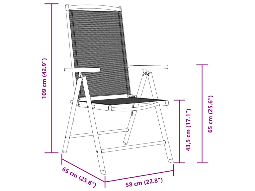 Područky z dřevotřísky elegantně kompletují vzhled celé židle. Opěradla židlí je možné sklopit do 7 poloh, takže vždy najdete nejpohodlnější polohu. Sedadla z prodyšného textilenu jsou pohodlná. Židle mají také skládací design, takže je můžete složit a ušetřit místo, když je právě nepoužíváte. Polohovací židle mají lehkou konstrukci a snadno se přenášejí. Také si je můžete snadno vzít s sebou do kempu, na pláž apod.