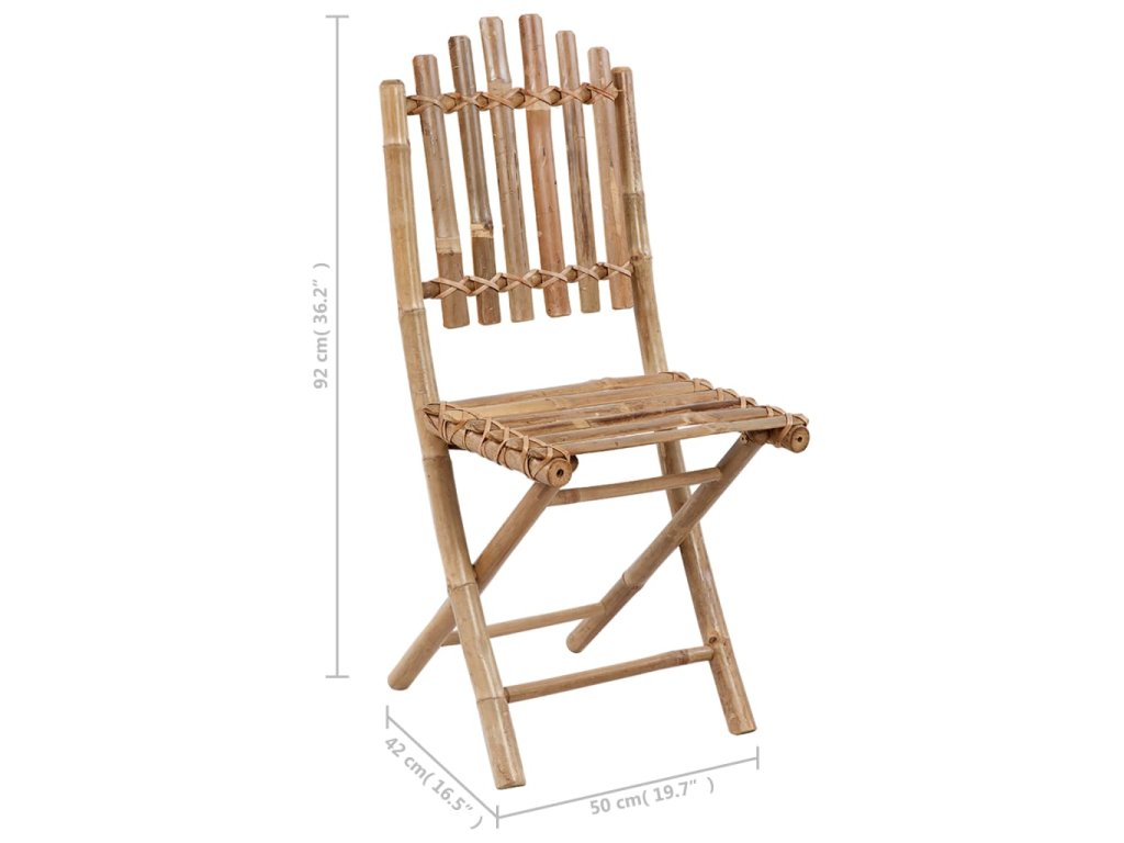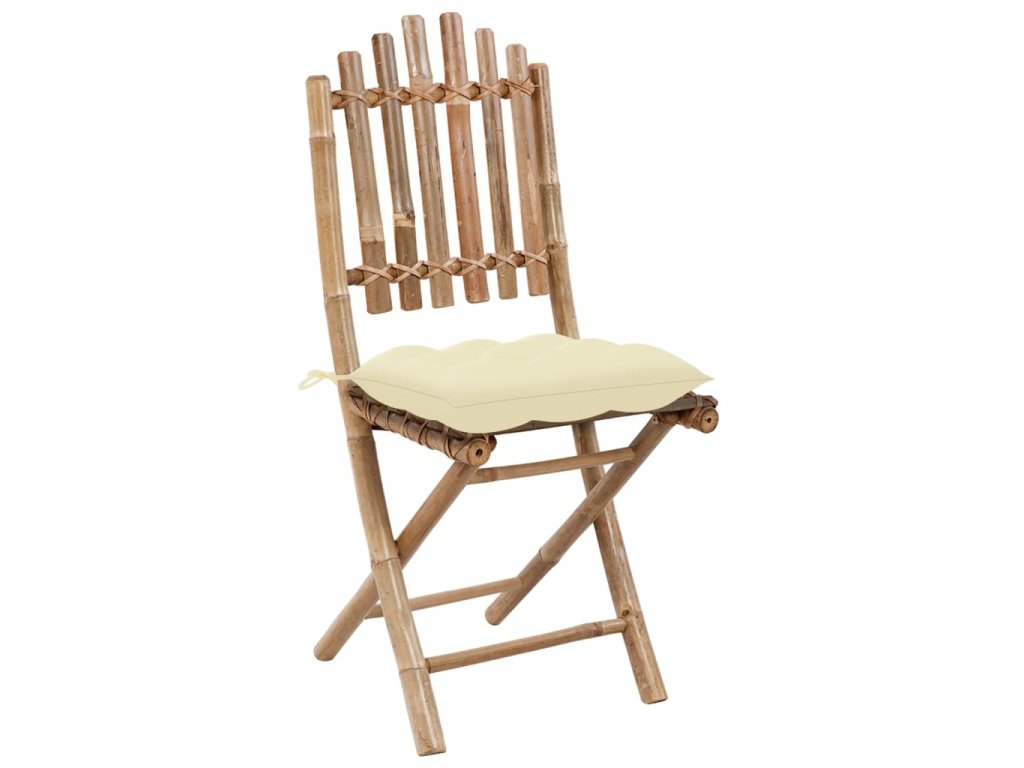 Zahradní židle je zhotovená z masivního bambusu, je tedy pevná a hodně toho vydrží. Skvěle také vzdoruje vodě a dalším klimatickým vlivům a k očištění vám postačí navlhčený hadřík. Jídelní židli lze složit, abyste ušetřili místo, když ji zrovna nepoužíváte. Přiložené podušky se vám při odpočinku postarají o maximální pohodlí. Jsou ušité ze 100% polyesteru, jsou tedy dostatečně silné a odolné, aby zvládly běžné venkovní používání. Každá z nich je opatřená dvěma páry šňůrek, kterými je můžete k židli pevně přichytit.