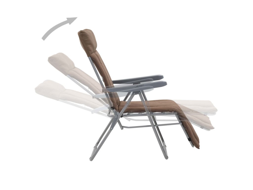 Každá kempingová židle má rám vyrobený z vysoce kvalitní oceli, je tudíž výjimečně odolná a pevná. Židli je možné nastavit do 5 poloh. Je vybavena molitanem plněnou poduškou, která příjemně pruží a je velmi pohodlná. Nastavte si opěradlo, podnožku a opěrku hlavy a dopřejte si odpolední siestu v té nejpohodlnější poloze.