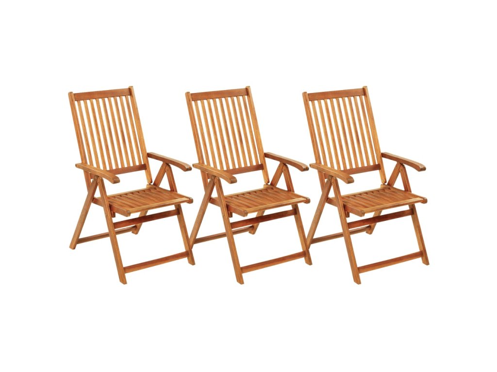 Skládací židle je vyrobená z masivní akácie, což je tropické tvrdé dřevo, které je stabilní a velmi odolné. Povrch je napuštěný olejem, takže se snadno čistí vlhkým hadříkem. Jídelní židle se dá polohovat do 5 pozic, poskytne vám tedy při sezení optimální pohodlí. Židli můžete složit, abyste ušetřili místo, když ji zrovna nepoužíváte. O komfort se vám při relaxaci a odpočinku postarají dodané podušky, které lze na obou stranách upevnit párem šňůrek a elastickým popruhem na opěradlo.