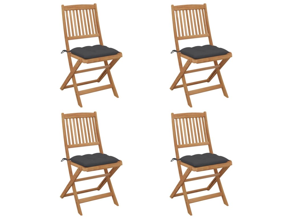 Zahradní židle jsou zhotovené z masivní akácie, takže jsou stabilní a hodně toho vydrží. Masivní akáciové dřevo dokáže unést značnou váhu, skvěle odolává působení času a neopotřebovává se. Na židlích si tedy budete moci užívat odpočinku po dlouhá léta. Navíc je lze složit, aby vám zbytečně nezabíraly místo, když je zrovna nepoužíváte. Přiložené podušky vám zajistí mimořádné pohodlí. Každá z nich je opatřená dvěma páry šňůrek pro bezpečné připevnění k židli.