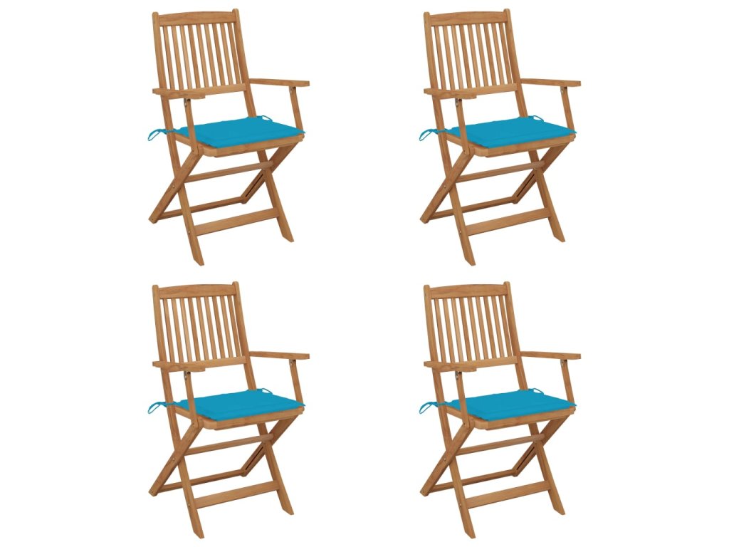 Zahradní židle jsou zhotovené z masivní akácie, takže jsou stabilní a hodně toho vydrží. Masivní akáciové dřevo dokáže unést značnou váhu, skvěle odolává působení času a neopotřebovává se. Na židlích si tedy budete moci užívat odpočinku po dlouhá léta. Navíc je lze složit, aby vám zbytečně nezabíraly místo, když je zrovna nepoužíváte. Přiložené podušky vám zajistí mimořádné pohodlí. Každá z nich je opatřená dvěma páry šňůrek pro bezpečné připevnění k židli.